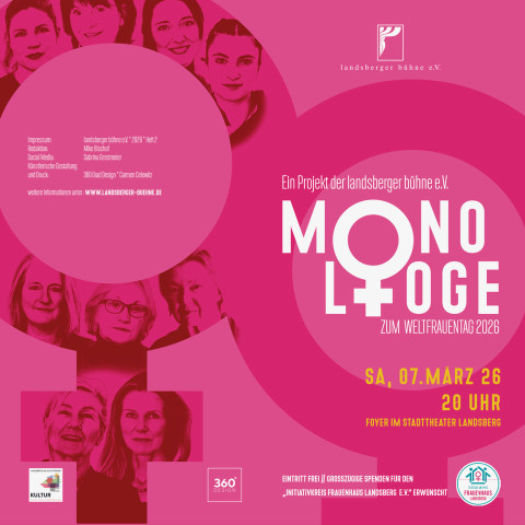 Zum dritten Mal beteiligen wir uns am Frauenfestival der Stadt und des Landkreises Landsberg am Lech und setzen die erfolgreiche MONOLOGE Reihe am Vorabend des Weltfrauentages fort.
